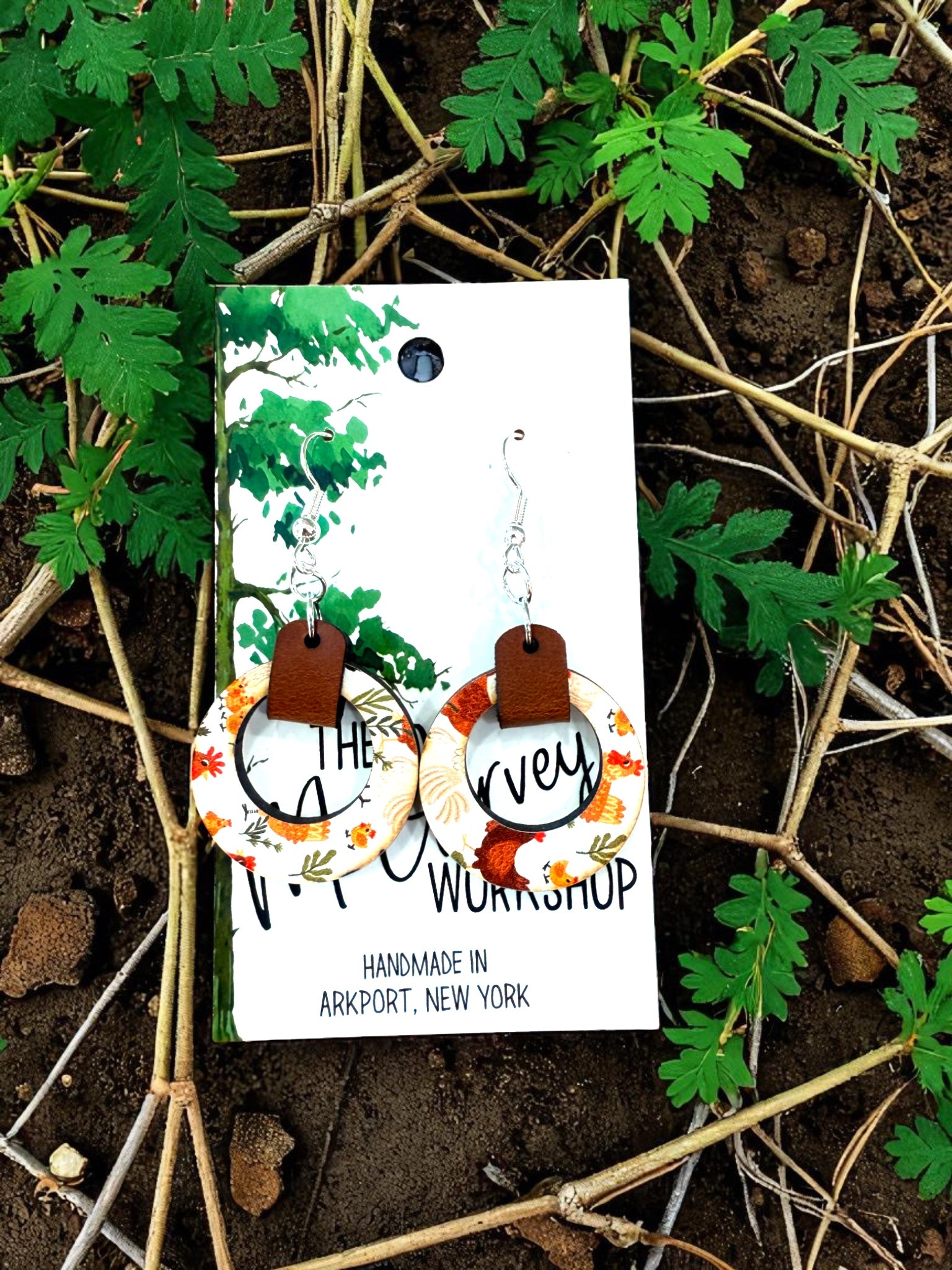 Wood and Leather Dangle Earrings, Wood Chicken Hoop Earrings, Hypoallergenic