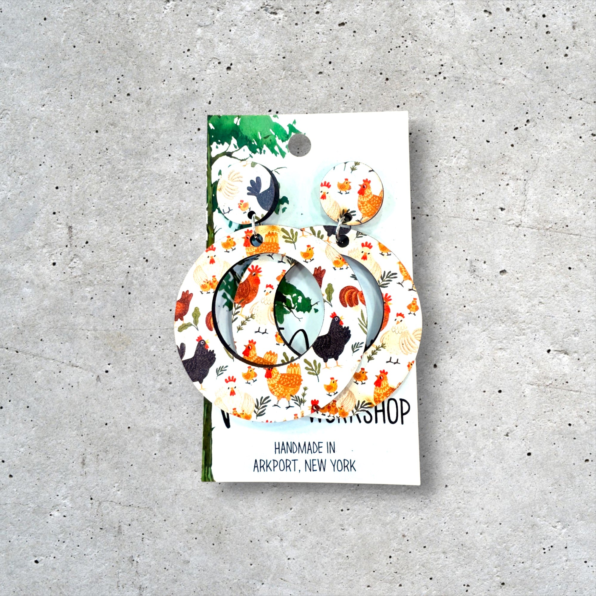 Wood Chicken Hoop Dangle Earrings, Wood Earrings, Hypoallergenic