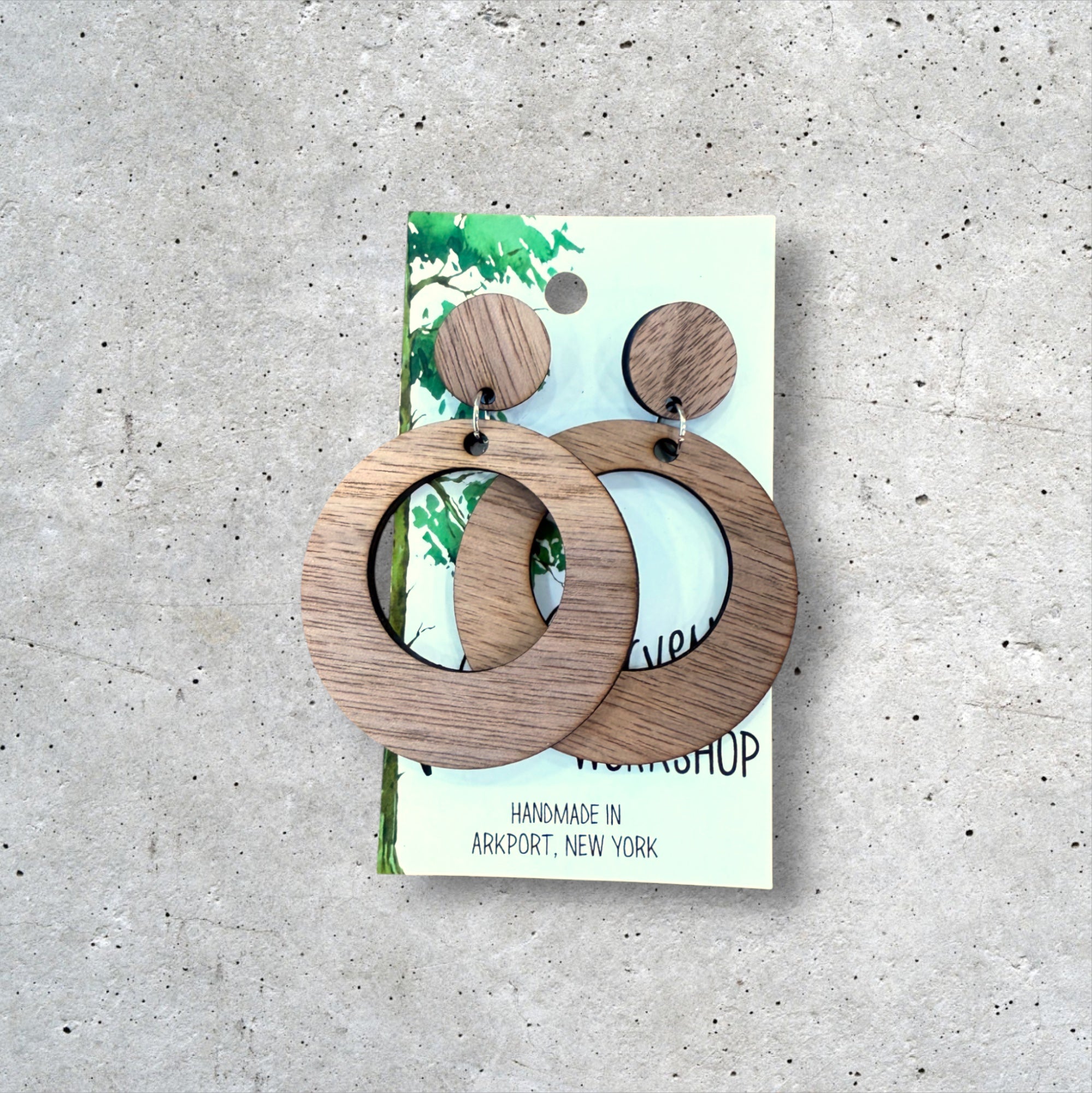Wood Hoop Dangle Earrings, Wood Earrings, Hypoallergenic