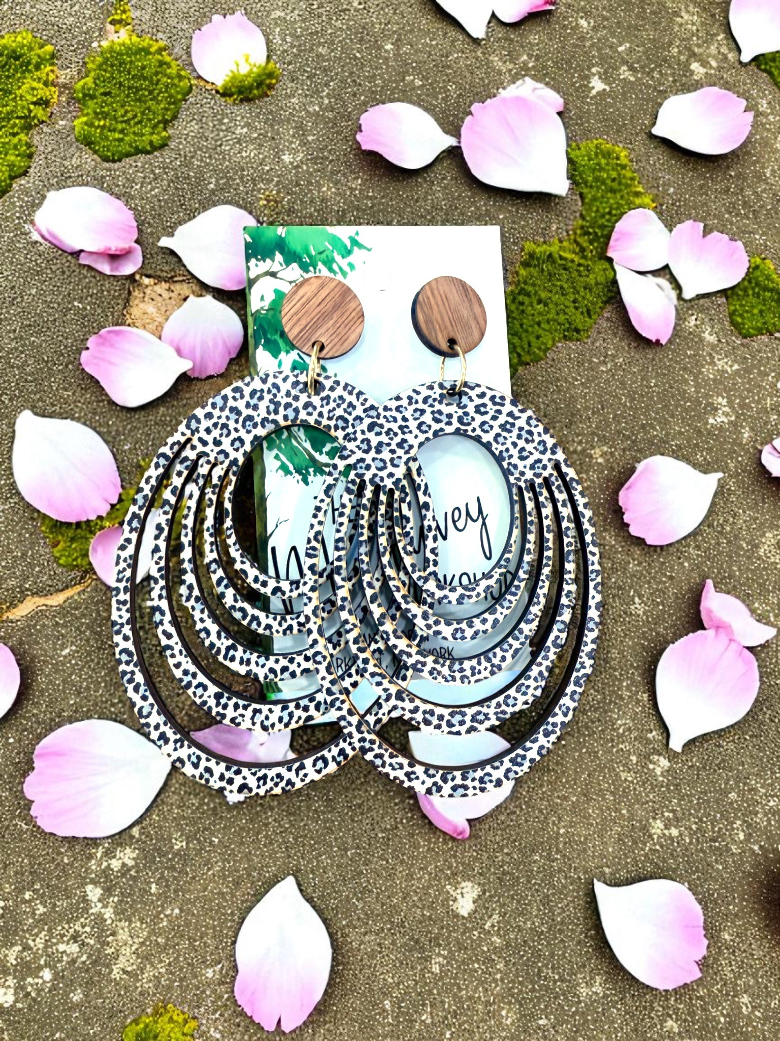Wood Hoop Dangle Earrings, Leopard Wood Earrings, Hypoallergenic